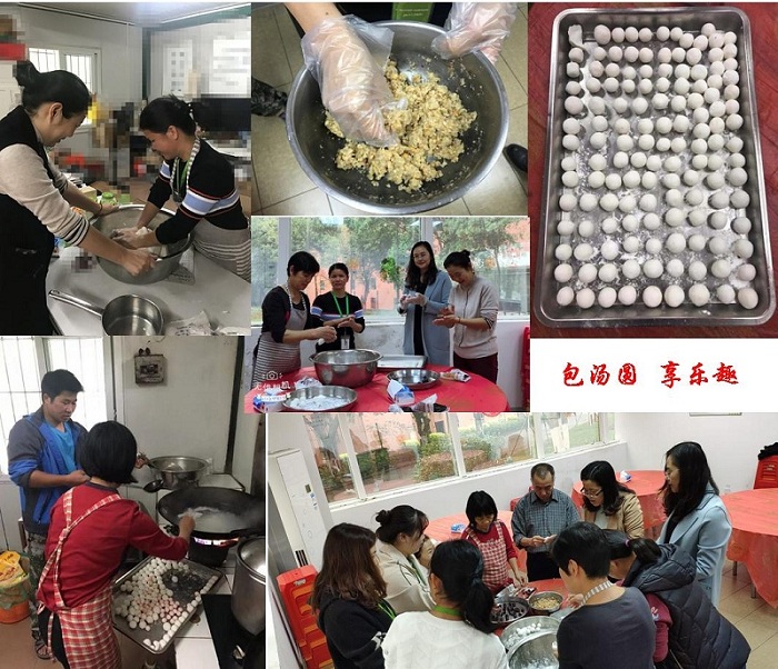 活動現場一片熱鬧景象,在大廚指導下,大家齊齊動手。有的揉面、有的拌餡……一個個白白胖胖的小湯圓下鍋煮熟冒出頭來,甚是可愛。