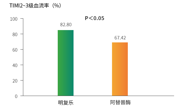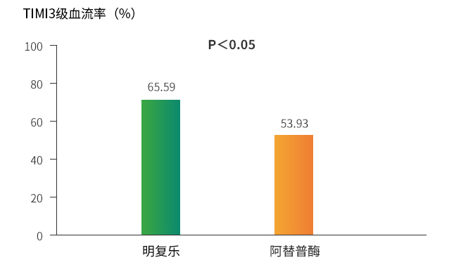 主要療效:明復(fù)樂(rhTNK-tPA) 16 mg 90 min 梗死血管的開通率顯著高于阿替普酶(rt-PA)50mg(p<0.05)