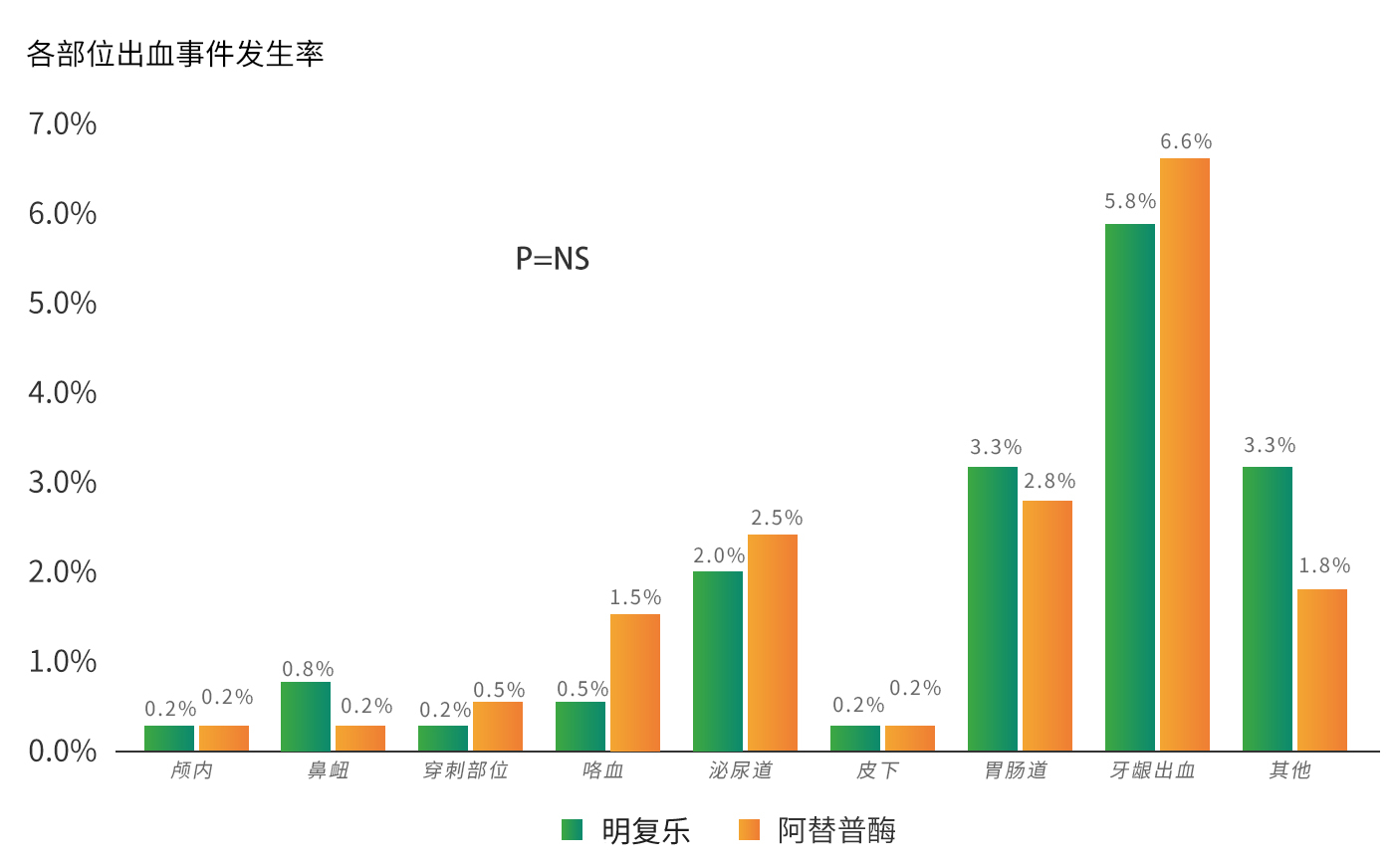 安全性結(jié)果顯示:明復(fù)樂出血風(fēng)險(xiǎn)低,安全性與阿替普酶相當(dāng)
