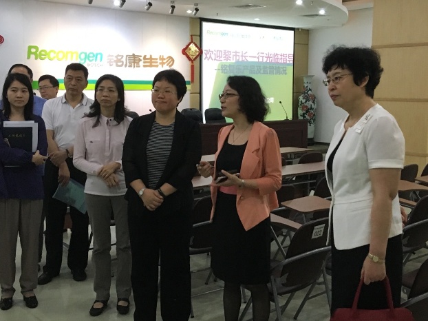 2016年4月26日上午,廣州市副市長(zhǎng)黎明一行來(lái)我公司進(jìn)行廣州市藥品安全監(jiān)管實(shí)地調(diào)研,陪同視察的有廣州市食品藥品監(jiān)管局張雅潔局長(zhǎng)、鐘廣靜副局長(zhǎng)和安全監(jiān)管處張志鈞處長(zhǎng)等。楊琴總經(jīng)理著重介紹了我司自主研發(fā)的生物技術(shù)新藥銘復(fù)樂(lè)的產(chǎn)品特點(diǎn)、應(yīng)用優(yōu)勢(shì)和技術(shù)先進(jìn)性,指出我司產(chǎn)品是國(guó)內(nèi)首家獲批上市的第三代重組t-PA,是目前唯一可單次靜脈推注的溶栓藥,一針救命,使用方便,適合急救,也是迄今最安全有效的溶栓藥,溶通率高達(dá)83%,優(yōu)于進(jìn)口對(duì)照藥(67%),且顱內(nèi)出血率更低,安全性更好,匯報(bào)了近一年來(lái)接受各級(jí)藥監(jiān)部門監(jiān)管的情況,并帶領(lǐng)參觀了公司獨(dú)特的動(dòng)物細(xì)胞連續(xù)培養(yǎng)生產(chǎn)線、重組蛋白分離純化生產(chǎn)線和研發(fā)車間。黎副市長(zhǎng)對(duì)公司在新藥研發(fā)方面取得的成績(jī)表示肯定。隨后,黎副市長(zhǎng)、張局長(zhǎng)等一行調(diào)研人員和公司主要領(lǐng)導(dǎo)班子進(jìn)行了座談,深入了解銘復(fù)樂(lè)銷售情況、人才引進(jìn)模式以及公司目前面臨的困難和問(wèn)題等,并要求隨行人員對(duì)企業(yè)的困難和建議及時(shí)整理上報(bào)。